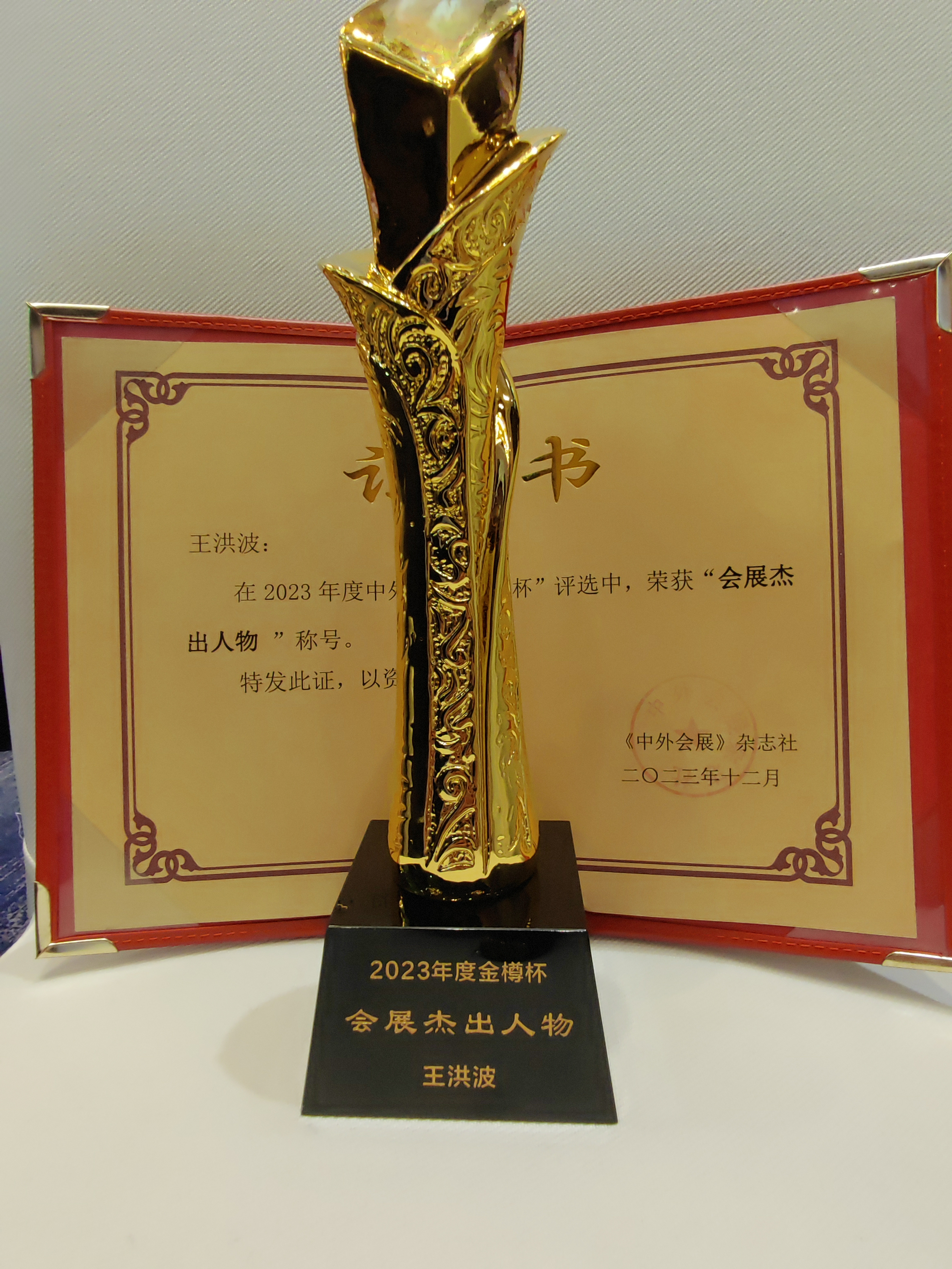 在會期舉辦的“2023年度中外會展‘金樽杯’宣傳推選”活動中,鄭州國際會展中心有限公司負(fù)責(zé)人王洪波榮獲“金樽杯—會展杰出人物”殊榮,鄭州國際會展中心榮獲“金樽杯—最佳品質(zhì)服務(wù)會展場館”殊榮。
