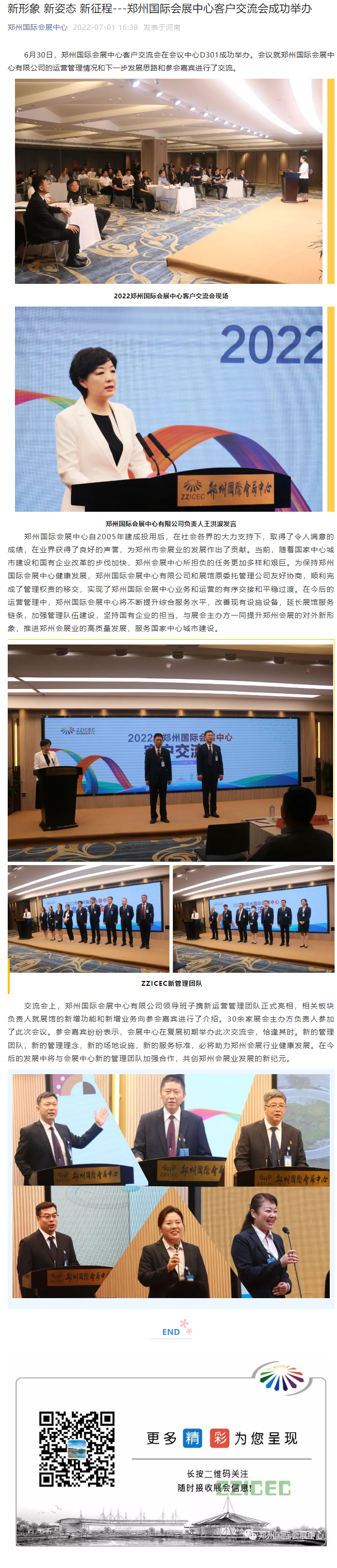 首頁新聞中心展會新聞文章詳情 文章詳情 新形象 新姿態(tài) 新征程---鄭州國際會展中心客戶交流會成功舉辦 6月30日,鄭州國際會展中心客戶交流會在會議中心D301成功舉辦。會議就鄭州國際會展中心有限公司的運營管理情況和下一步發(fā)展思路和參會嘉賓進(jìn)行了交流。