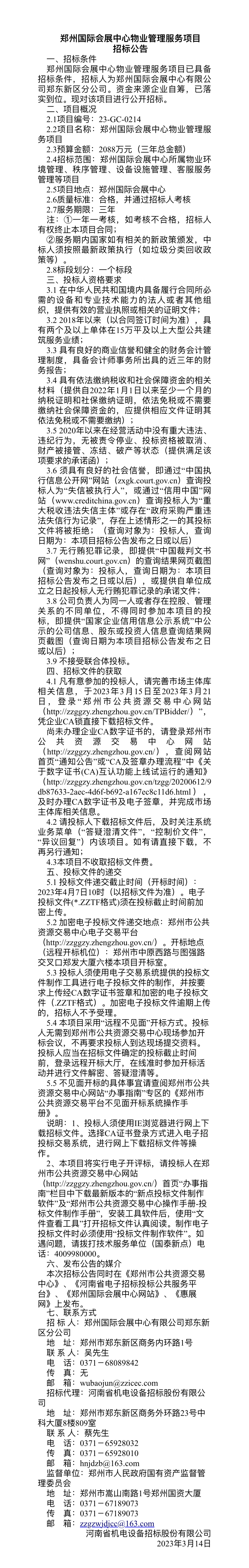 鄭州國(guó)際會(huì)展中心物業(yè)管理服務(wù)項(xiàng)目 招標(biāo)公告