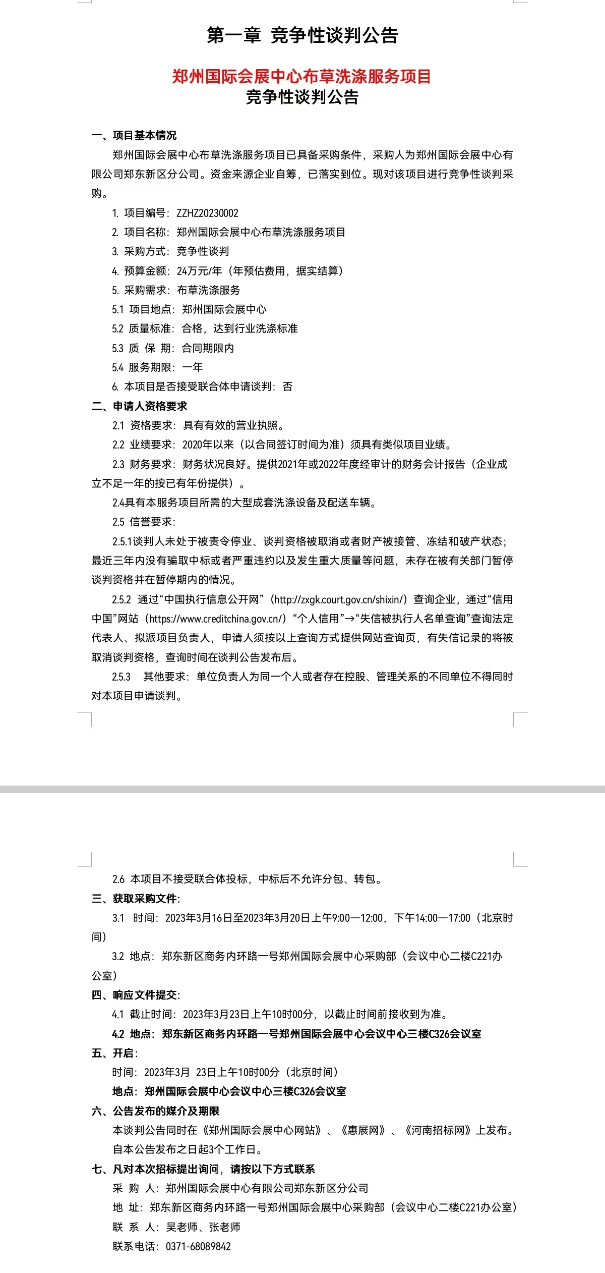 鄭州國際會展中心布草洗滌服務(wù)項目 競爭性談判公告