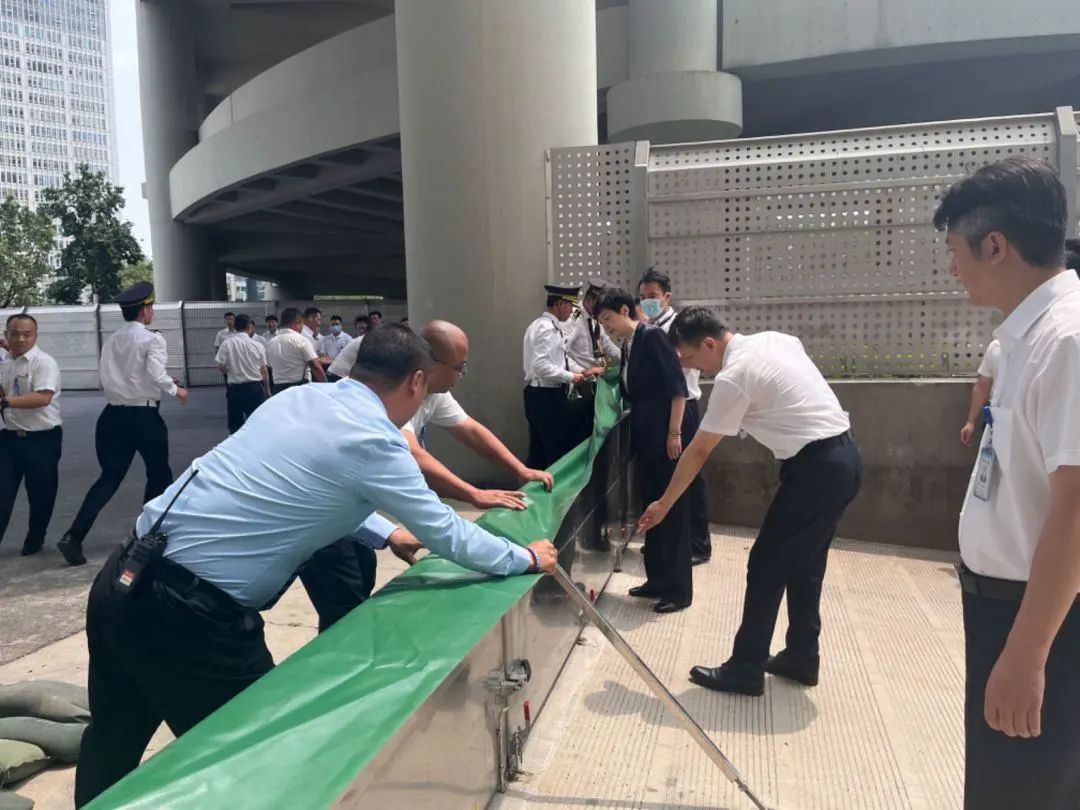 持續(xù)強(qiáng)降雨導(dǎo)致會(huì)議中心5-10號(hào)門出現(xiàn)積水且不斷上漲,公司根據(jù)汛情啟動(dòng)Ⅱ級(jí)橙色應(yīng)急響應(yīng)。應(yīng)急隊(duì)員開展救援并用防洪板進(jìn)行擋堵,工程保障部對(duì)附近區(qū)域電氣進(jìn)行檢查,同時(shí)根據(jù)汛情及時(shí)關(guān)閉可能進(jìn)水的設(shè)備設(shè)施。