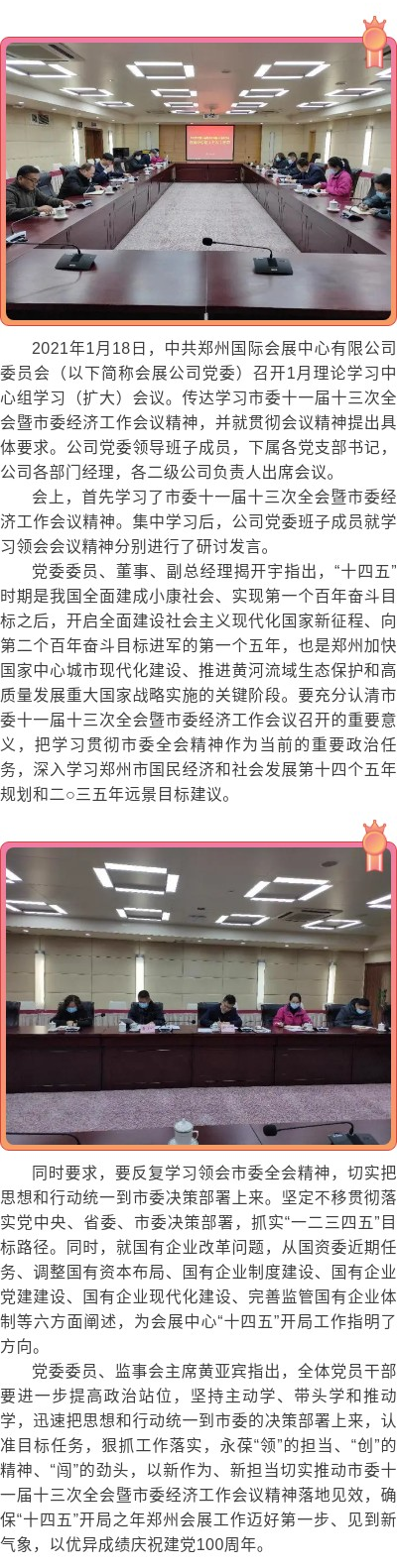中共鄭州國際會(huì)展中心有限公司委員會(huì) 召開理論學(xué)習(xí)中心組擴(kuò)大會(huì)議傳達(dá)學(xué)習(xí)市委 十一屆十三次全會(huì)暨市委經(jīng)濟(jì)工作會(huì)議精神